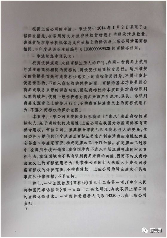 2、“東風(fēng)”商標(biāo)在印尼的專用權(quán),上柴也曾經(jīng)擁有過一段時(shí)間,這段時(shí)間常佳動(dòng)力也再出口印尼“東風(fēng)”牌的柴油機(jī),但給予了一定的補(bǔ)償金,可以說是誠(chéng)信經(jīng)營(yíng),這點(diǎn)和《商標(biāo)法》第七條第一款規(guī)定想符合。