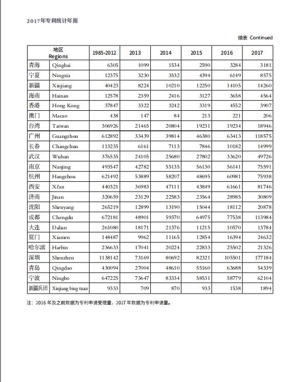 國(guó)家知識(shí)產(chǎn)權(quán)局編制的《2017年中國(guó)專利統(tǒng)計(jì)年報(bào)》正式發(fā)布。專利統(tǒng)計(jì)年報(bào)收錄了2017年我國(guó)各省市區(qū)及世界177個(gè)國(guó)家來(lái)華的專利數(shù)據(jù),涉及發(fā)明、實(shí)用新型、外觀設(shè)計(jì)的申請(qǐng)、授權(quán)和有效狀況,以及中國(guó)向國(guó)外專利申請(qǐng)狀況,反映了2017年我國(guó)專利事業(yè)的發(fā)展態(tài)勢(shì)。專利統(tǒng)計(jì)年報(bào)作為經(jīng)國(guó)家統(tǒng)計(jì)局批準(zhǔn)備案的統(tǒng)計(jì)調(diào)查項(xiàng)目,是反映我國(guó)專利工作進(jìn)展情況的綜合資料性年刊。
